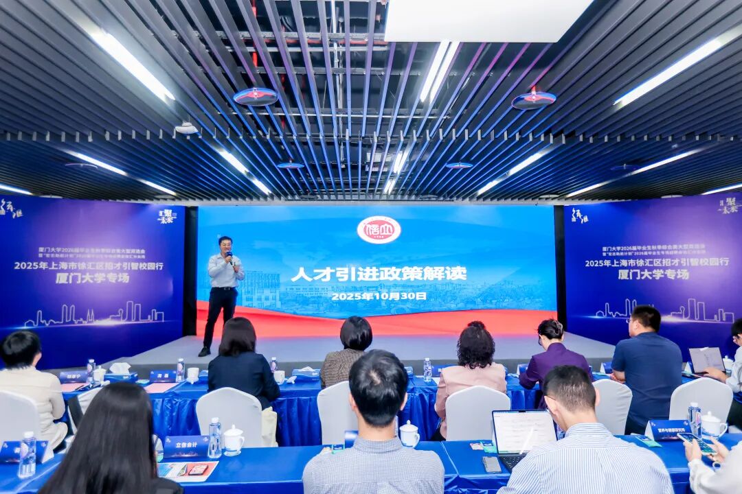 2025年“汇聚未来”徐汇区招才引智校园行厦门大学专场日前举行。区委组织部(区人才局)采用“政企研组团”模式旺发速配,携20余家区域重点企事业单位、近700个产学研优质职位,共同走进校园,深化创新人才引进培育。