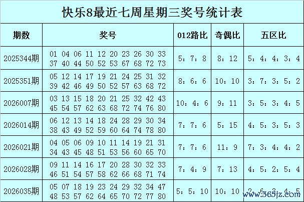 福彩快乐8第2026035期(上周三)开奖回顾:05 07 18 19 23 24 29 32 34 47 48 53 57 62 64 65 70 72 77 80,其中奖号012路比为5:5:10,奇偶比为10:10,五区比为2:6:3:4:5。