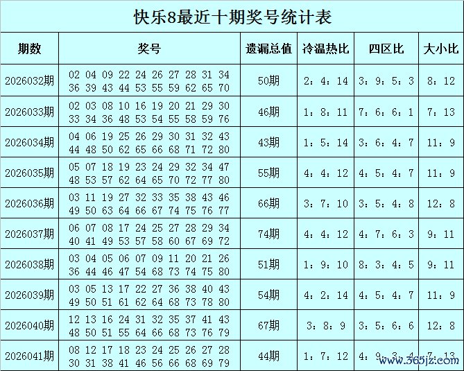 福彩快乐8第2026041期开奖回顾:08 12 17 18 23 24 25 26 27 28 30 31 38 41 46 56 66 68 69 79,其中奖号遗漏总值为44,冷温热码比为1:7:12,四区比为4:9:3:4。